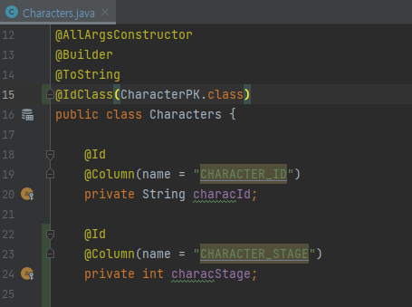 복합키를 사용하는 Characters클래스
