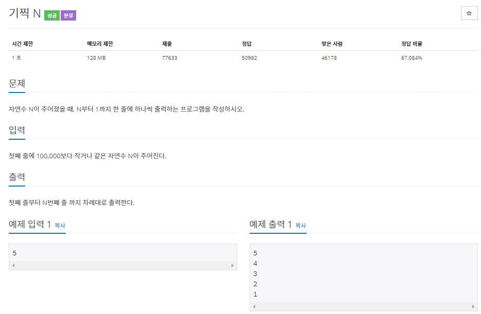 이문제는 바로이전 N찍기의 순서를 반대로 출력하라는 문제이다.