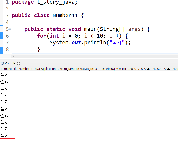 (초기값; 조건식; 증감량)을 원하는 값까지만 나타내도록 설정하면 반복하고 멈추게 된다.