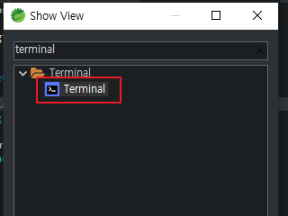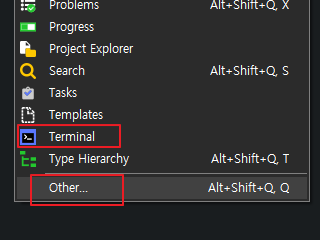 그러면 Termainl 이라는 목록이 보이고 보이지 않을시 other을 선택하여 terminal을 입력해주면 터미널을 사용할수있다.
