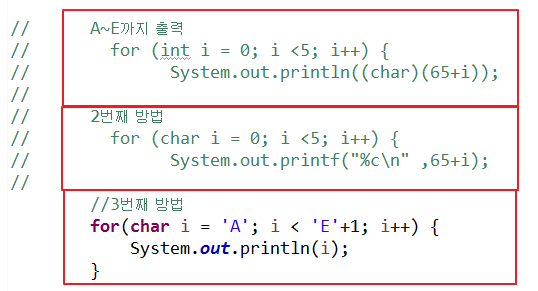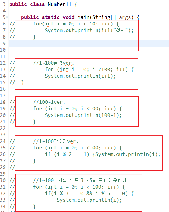이외에 다양한 for문을 적용하여 보았다.