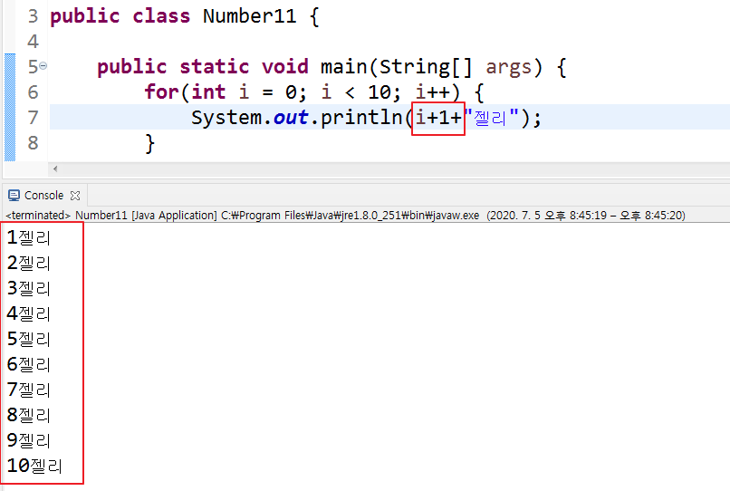 i+1을 추가하여 1부터 시작하여 10에서 멈추도록 설정하여 보았다.