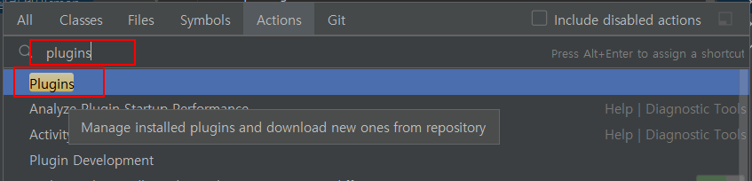 1.상단에 help- find Action클릭하여 plugins를 검색하여 plugins를 선택해준다.