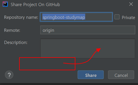 2. 다음과 같은 창이 나타난다 repositorry name은 프로젝트의 이름이 된다.