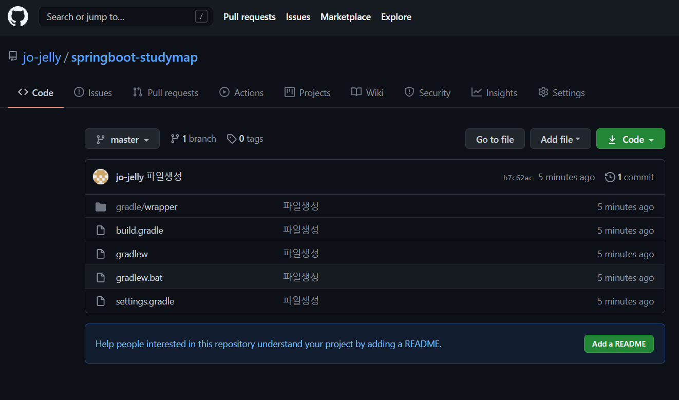 14. add 하게되면 다음과 같은 화면이 나오고 입력해준 후 에 해당 커밋을 push 해준다.