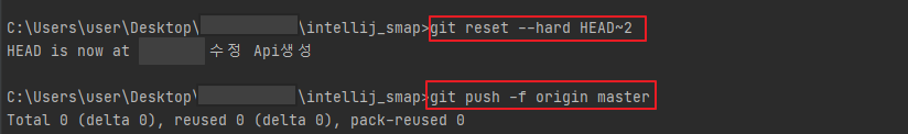 1. 로컬에서 내가 되돌리고 싶은 커밋으로 되돌린다. ex.( HEAD~1는 최신 커밋 1개, HEAD~2는 최신 커밋 2개)