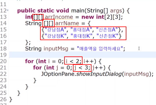오늘은 배열을 배우면서 값의 총합을 구하는 코드를 만들어보았다. 1 2 3 4 5 6 7 8 9 10 11 12 13 14 15 16 17 18 19 20 21 22 23 24 25 26 27 28 29 package day0716; public class Day14 { public static void main(String[] args) { int[][] array = { {95 , 86}, {83 , 92 , 96}, {78 , 83 , 93 , 87 , 88} }; int sum = 0; double avg = 0.0,cnt =0.0; for(int i = 0 ; i